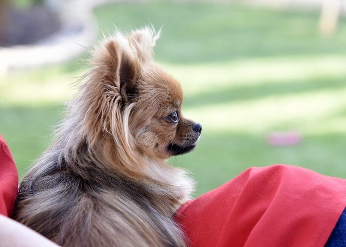 ![]() My new backyard, on my new mom's lap |